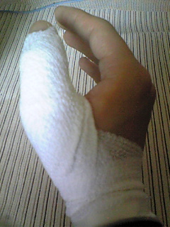 昨日から右手の親指が痛み出し、今日ほとんど動かなくなりました(笑)