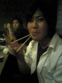 箸をもちながらもピース・・・やるな、この男。