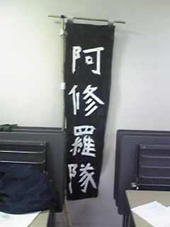 今日、稽古場に旗が現われました。